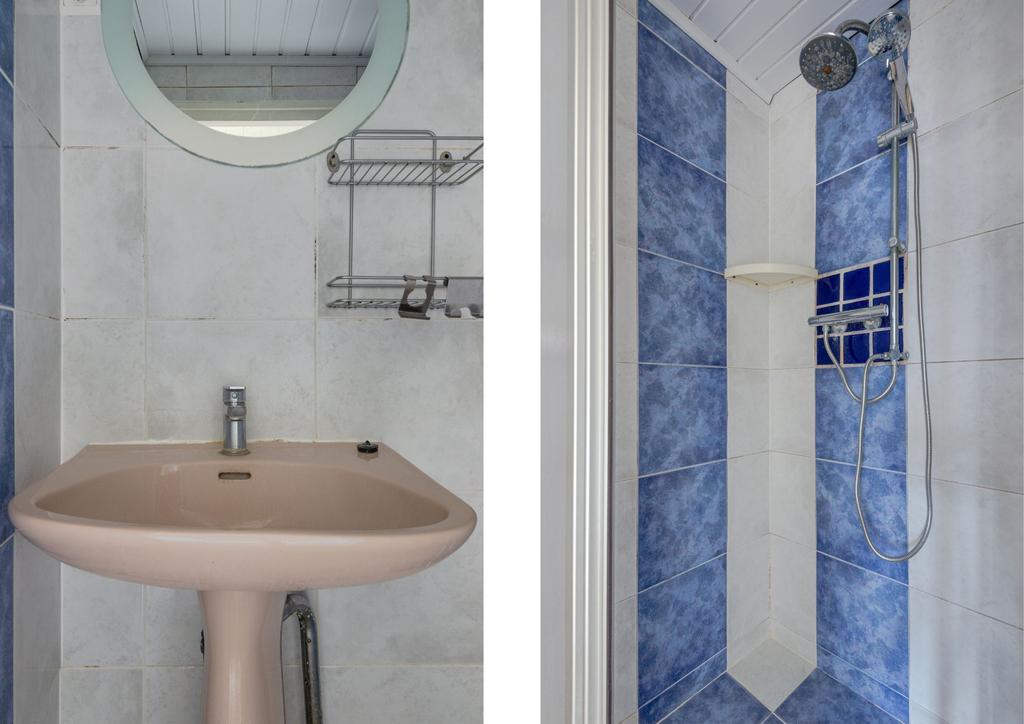 * Badkamer voorzien van betegeling, inloopdouche en wastafel.