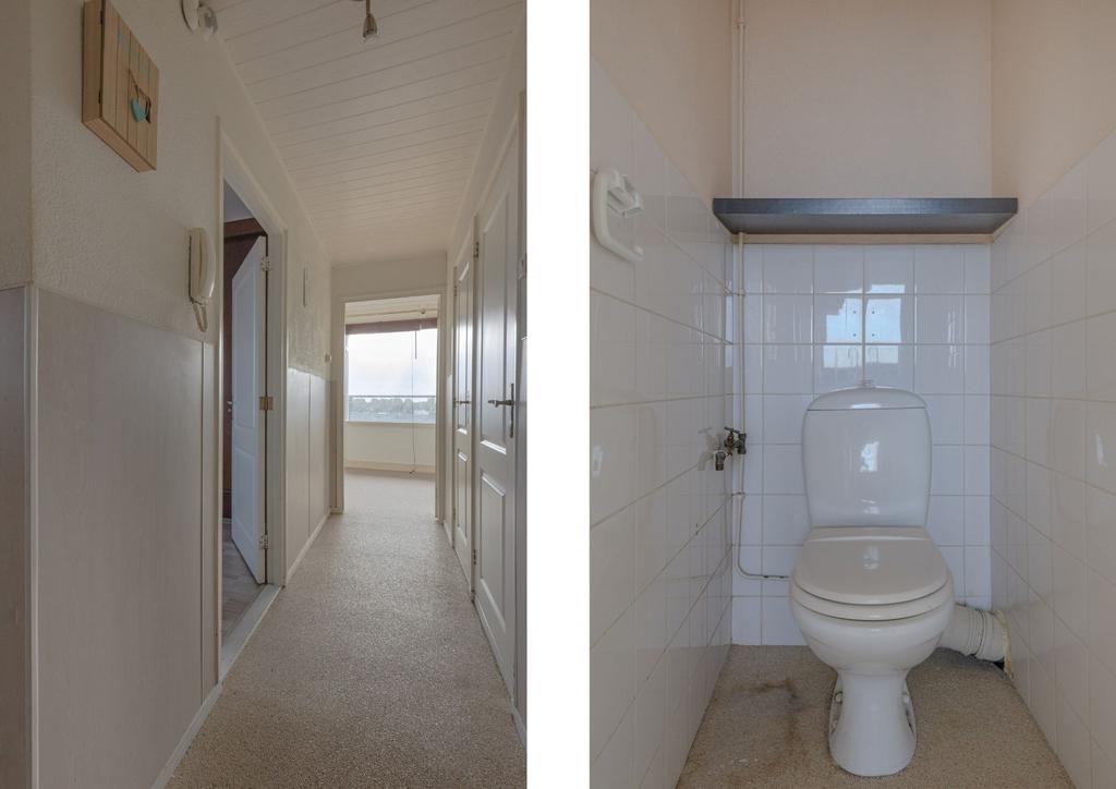 * Woningentree naast de liften; meterkast naast de voordeur; hal met vaste kast met wasmachine aansluiting.