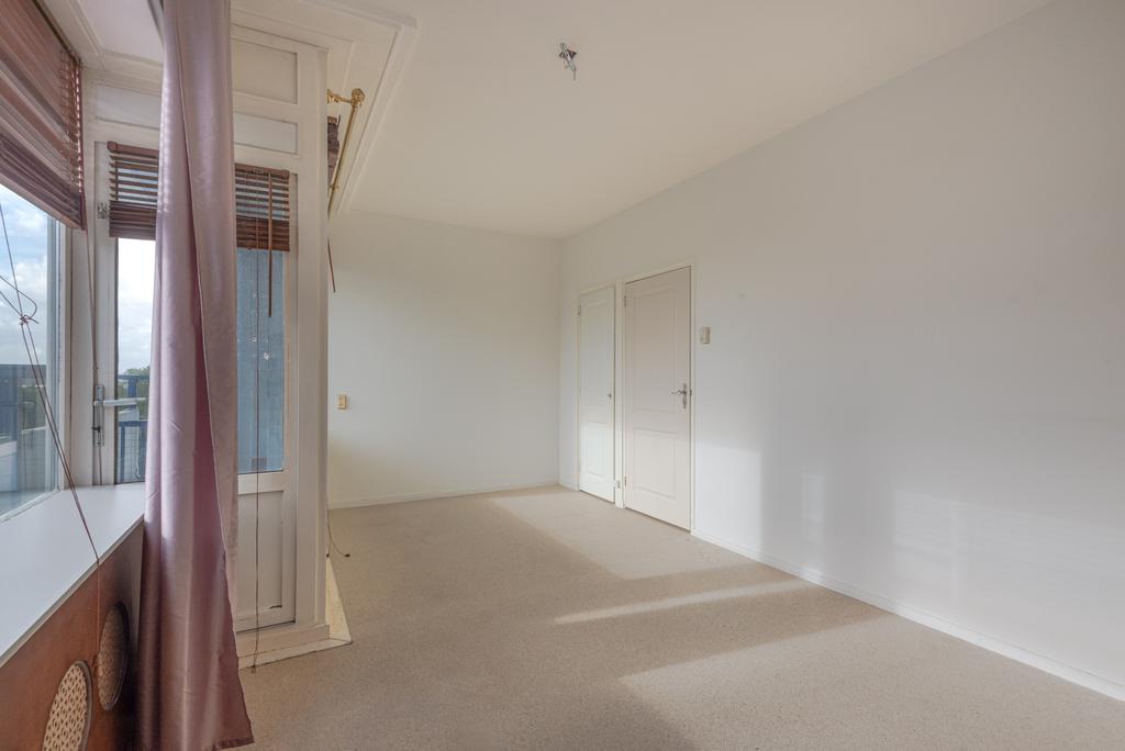 * Woonkamer aan de voorzijde voorzien van inbouwkast, gestuukt plafond en toegang tot het balkon.