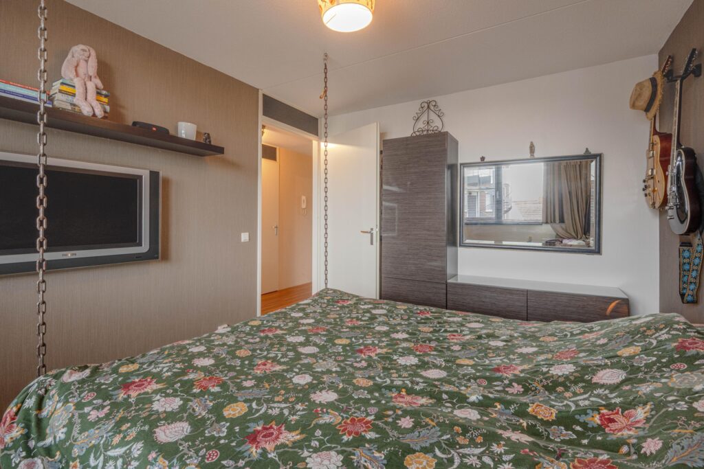 * Slaapkamer I aan de galerijzijde voorzien van laminaatvloer en strakke wanden en plafond.