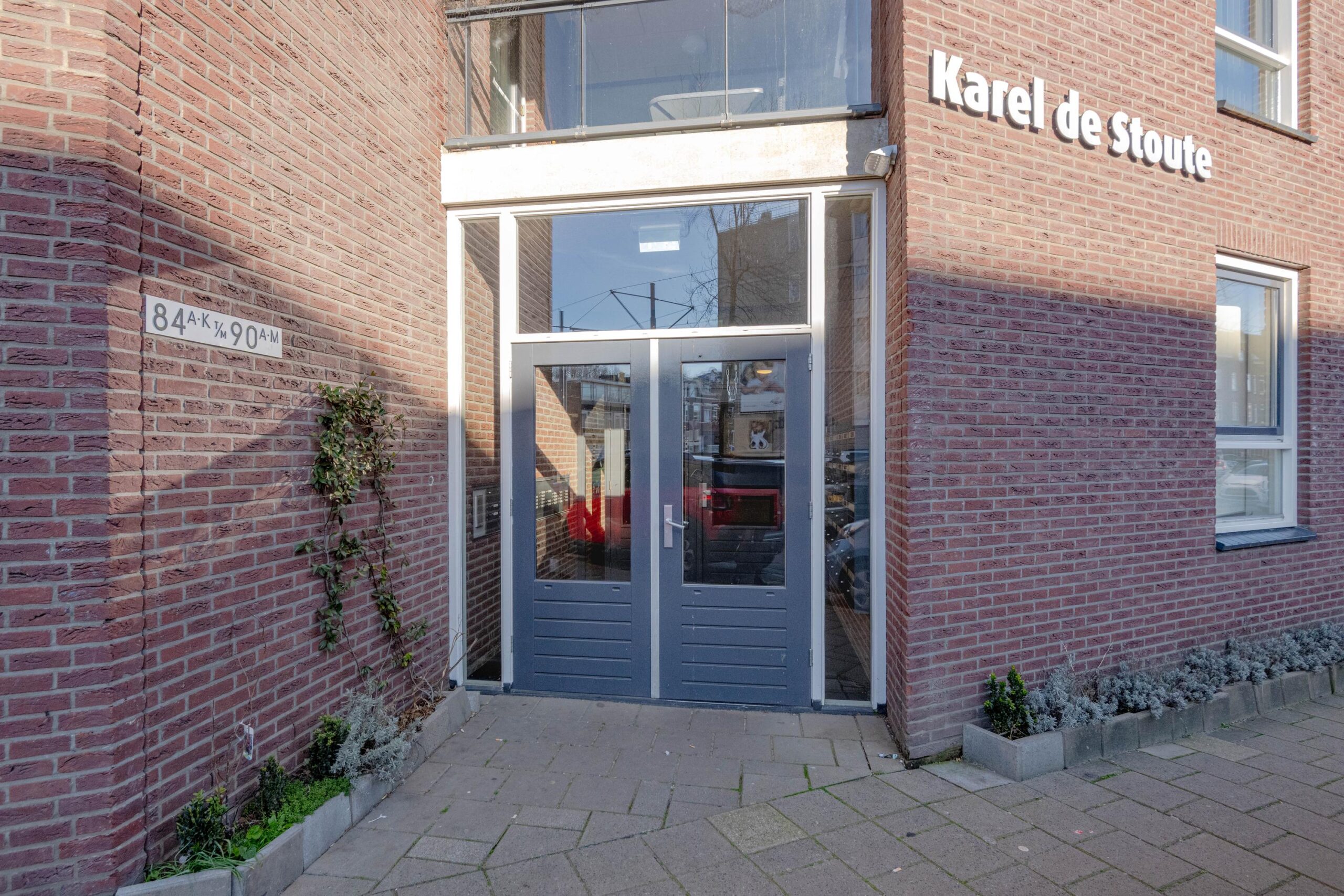 * Gesloten entree met postbussen, bellentableau, toegang tot de bergingen, parkeergarage en de lift.