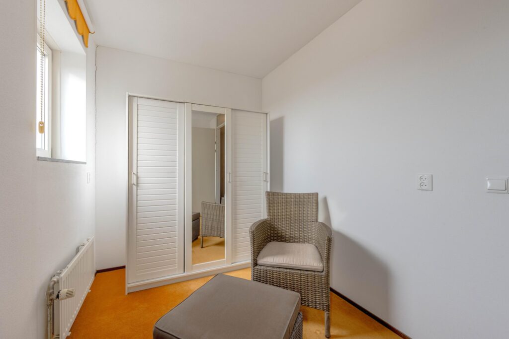* Slaapkamer I aan de achterzijde voorzien van tapijtvloer en strakke wanden en plafond.