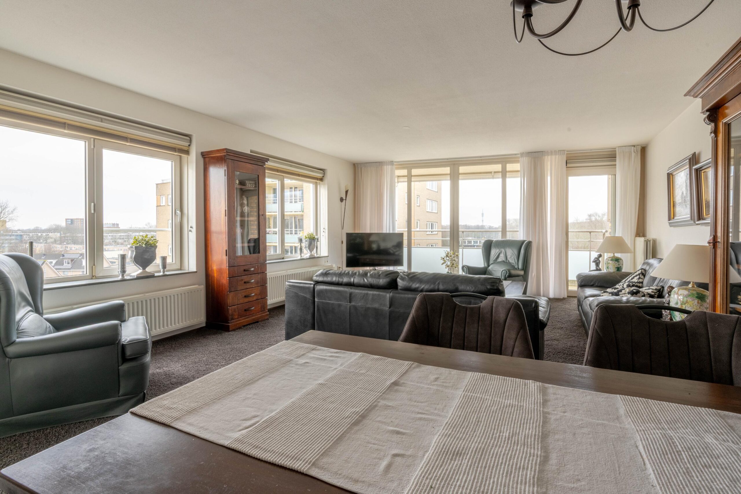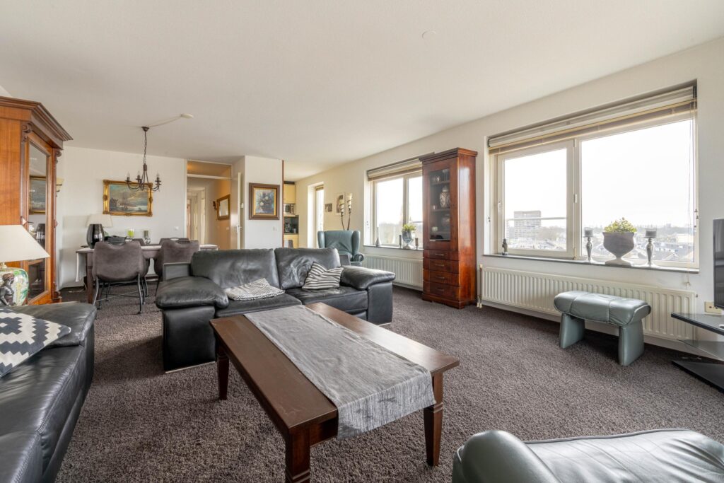 De woning verrast direct door de prettige indeling en de overvloed aan daglicht. Vanuit de centrale gang zijn alle vertrekken bereikbaar. De ruime hoekwoonkamer profiteert van meerdere raampartijen, waardoor de ruimte heerlijk licht en open aanvoelt. De woonkamer staat in open verbinding met de keuken en geeft toegang tot het royale inpandige balkon op het zonnige zuiden, de perfecte plek om een groot deel van de dag van de zon en het panoramische uitzicht te genieten. Verder beschikt het appartement over drie goede slaapkamers, een nette badkamer en een praktische inpandige berging met witgoedaansluitingen. Voor extra opslag is er bovendien een eigen berging in de onderbouw.
