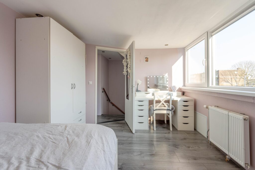 * Slaapkamer I aan de achterzijde voorzien van laminaatvloer en strakke wand- en plafondafwerking.