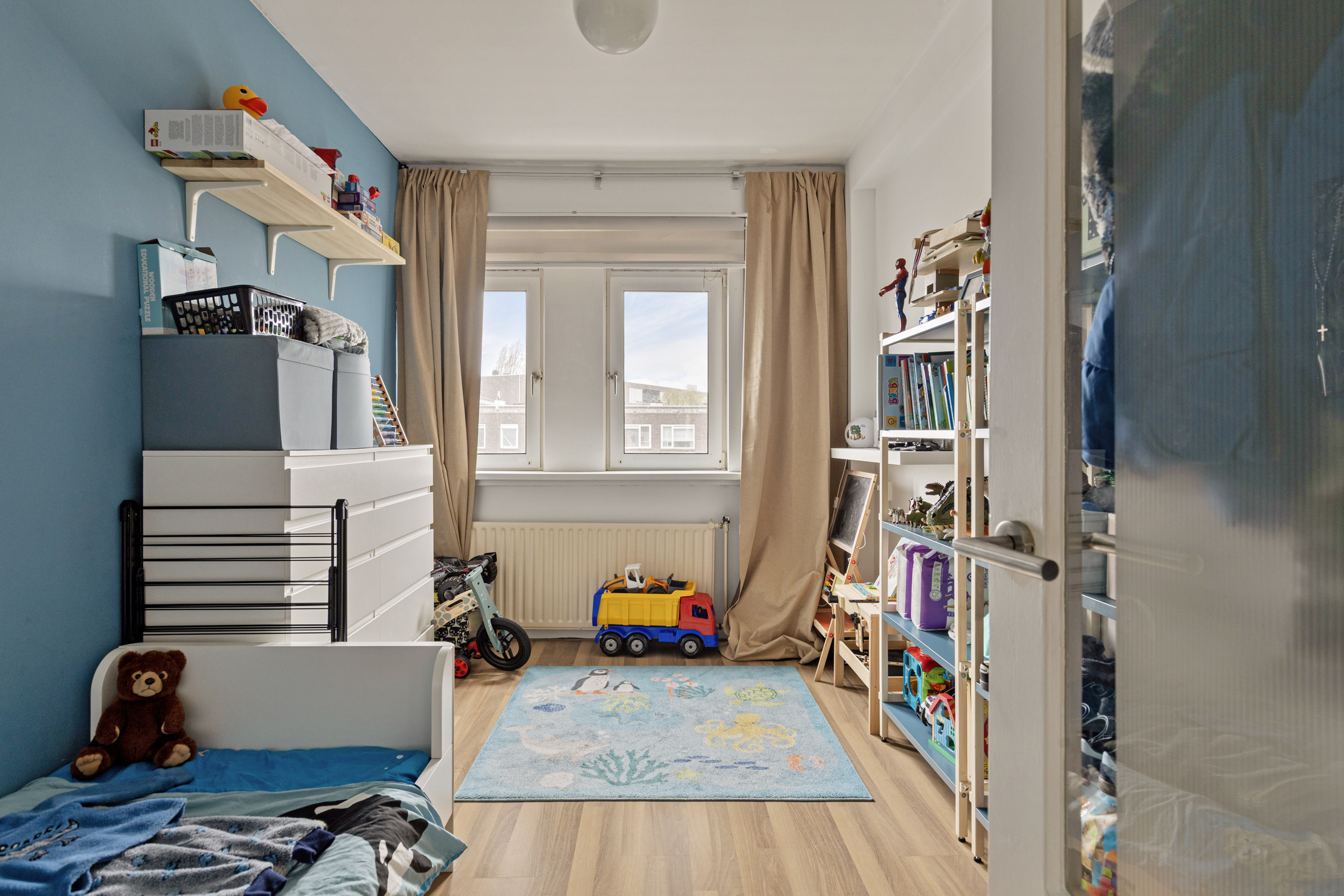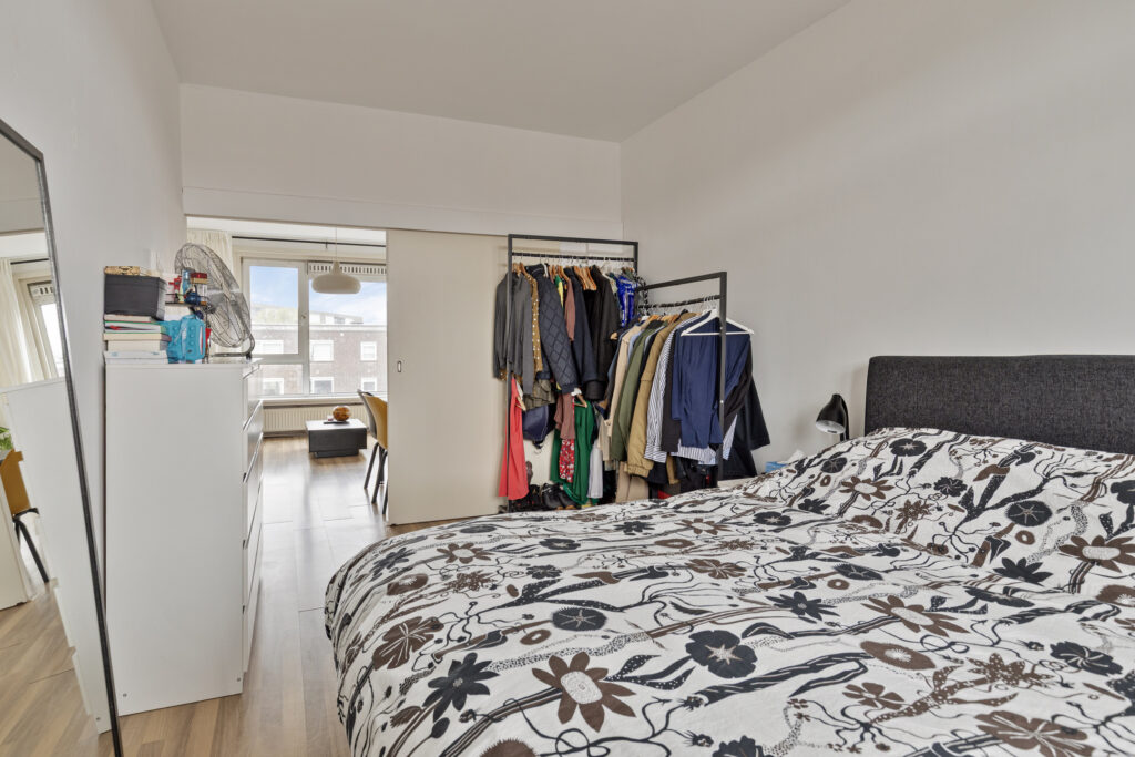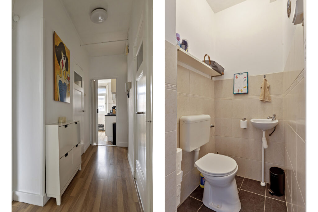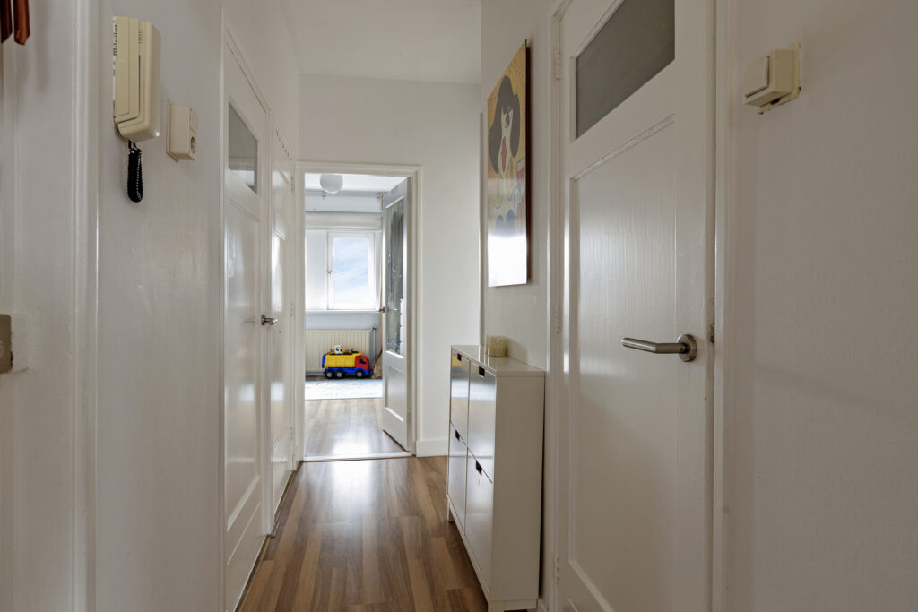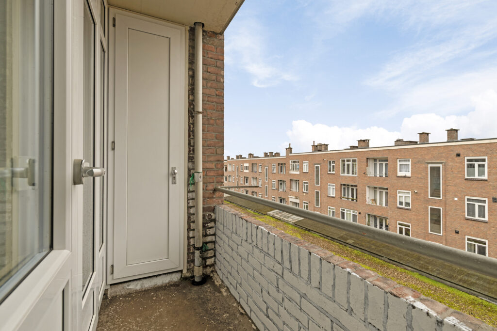 De woning beschikt over een ruime woonkamer aan de voorzijde met veel lichtinval, wat het geheel een open sfeer geeft. Aan de achterzijde bevindt zich een slaapkamer die via een schuifdeur vanuit de woonkamer bereikbaar is. De tweede slaapkamer ligt aan de voorzijde van de woning. De badkamer en het toilet zijn functioneel ingericht en aan de achterzijde ligt een fijn balkon met een gunstige ligging op de zon. Voor de wasmachine is er een praktische oplossing mogelijk in een aparte kast of in de badkamer. In de onderbouw bevindt zich bovendien een ruime berging die extra opslagruimte biedt.