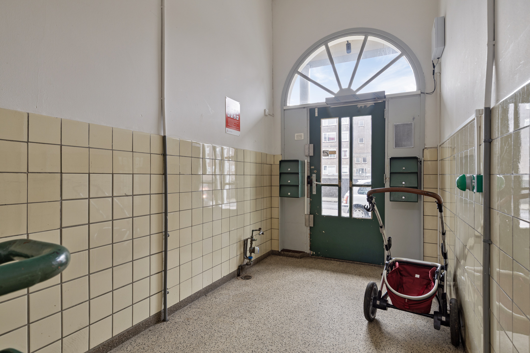* Entree middels gesloten portiek met brievenbussen, toegang tot de bergingen en trapopgang.