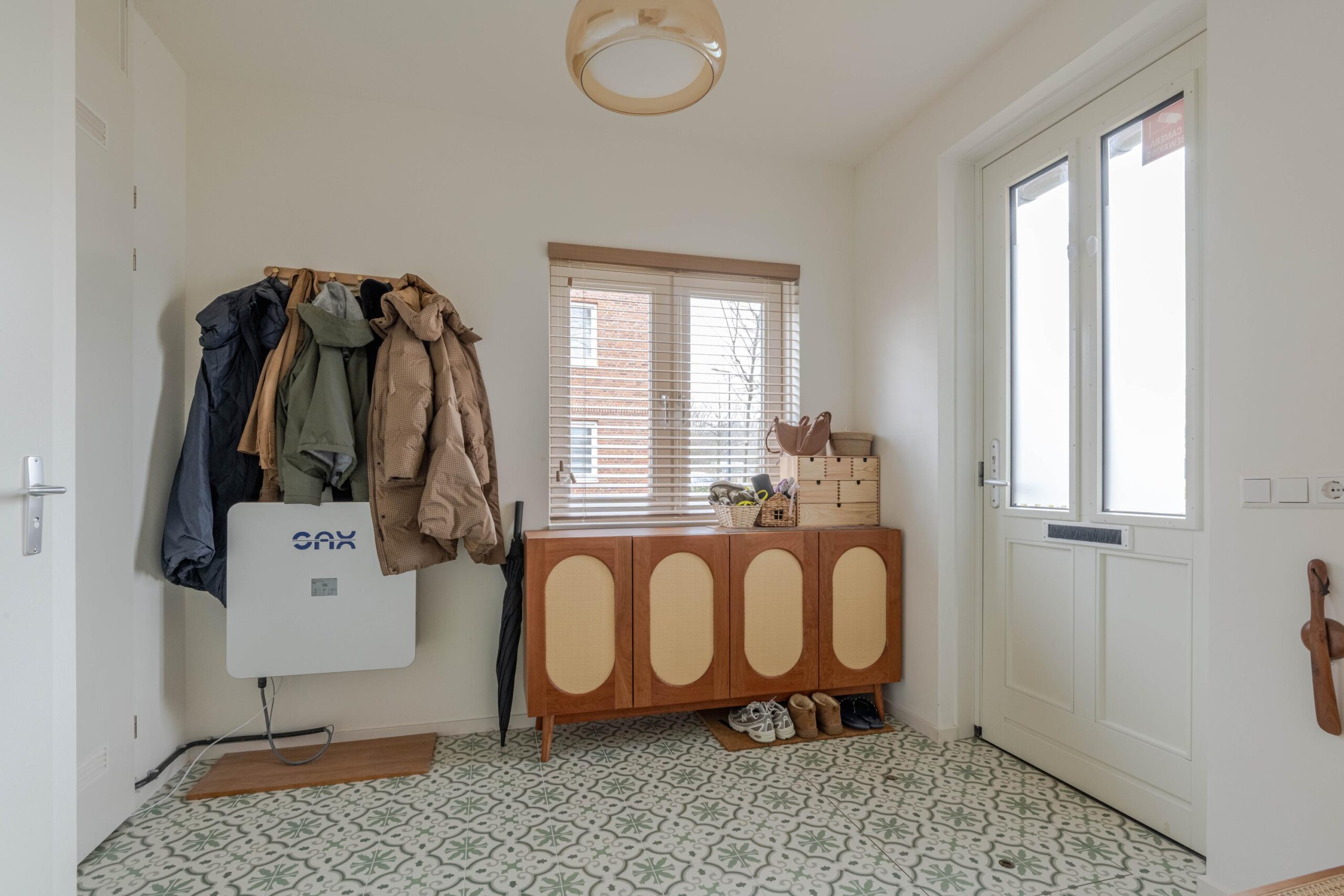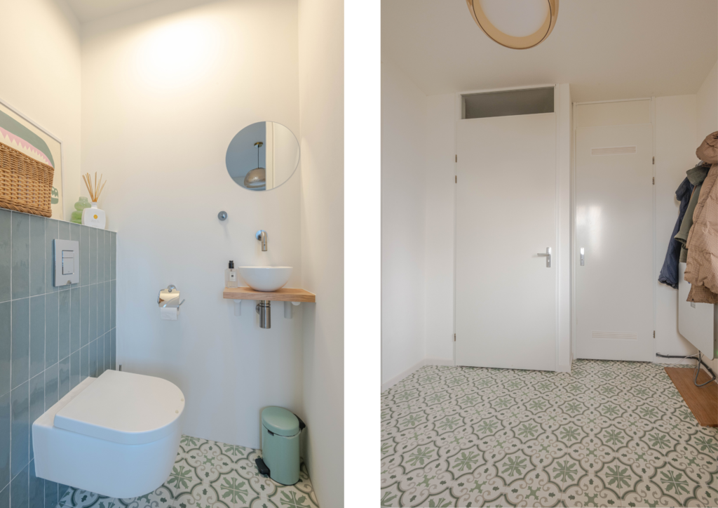 * Woningentree; hal voorzien van kleurrijke tegelvloer, meterkast, toegang tot het toilet en de woonkamer.