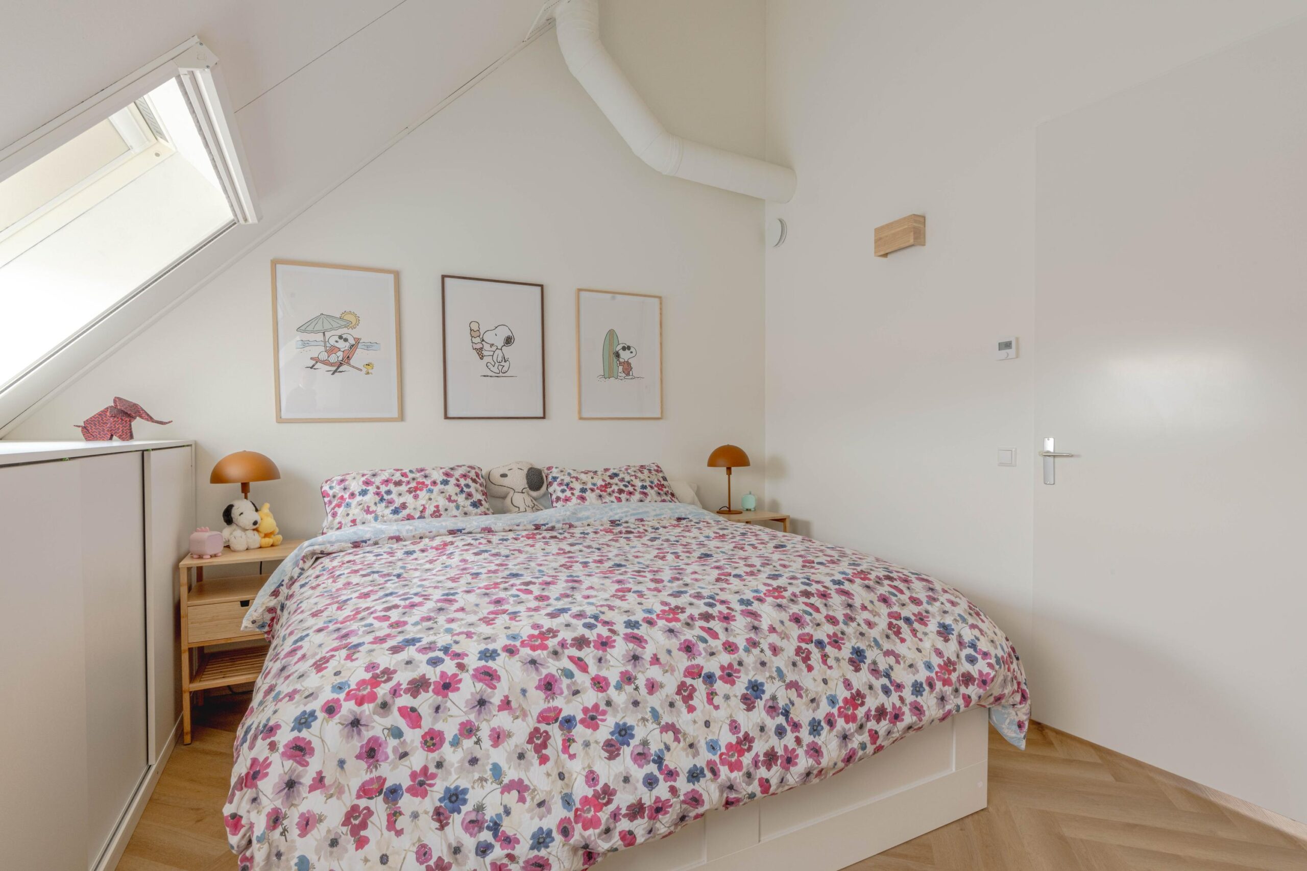 * Slaapkamer III aan de voorzijde, voorzien van vissengraat laminaatvloer, 2 dakramen en bergruimte achter knieschotten.
