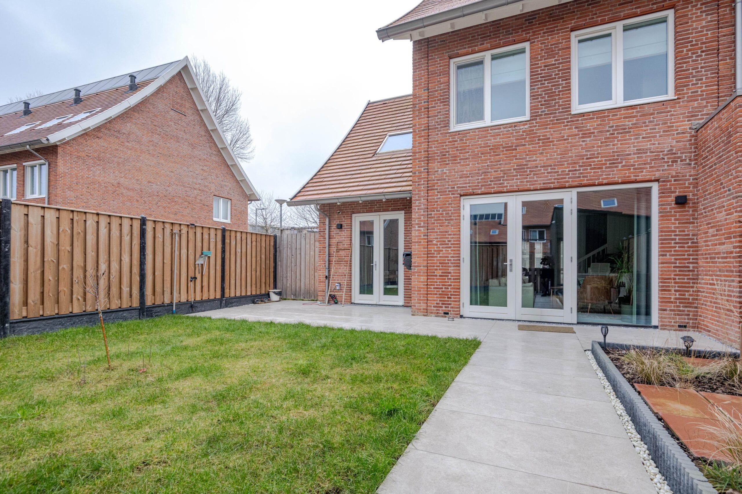 Ook buiten is alles tot in de puntjes verzorgd. De zonnige, strak aangelegde achtertuin biedt volop privacy en ontspanning. Parkeren doe je op eigen terrein, waar je de beschikking hebt over twee privéparkeerplaatsen, beide voorzien van een elektrisch oplaadpunt.
