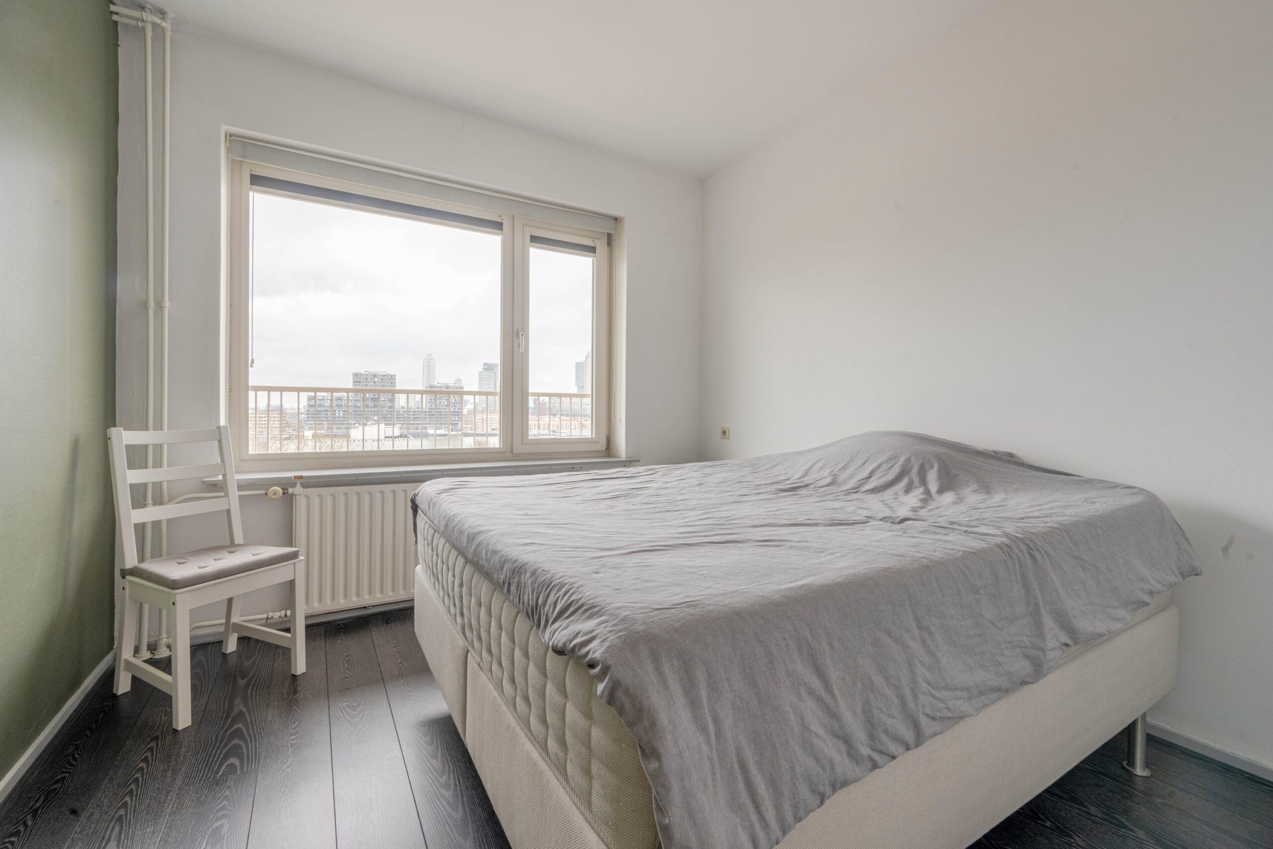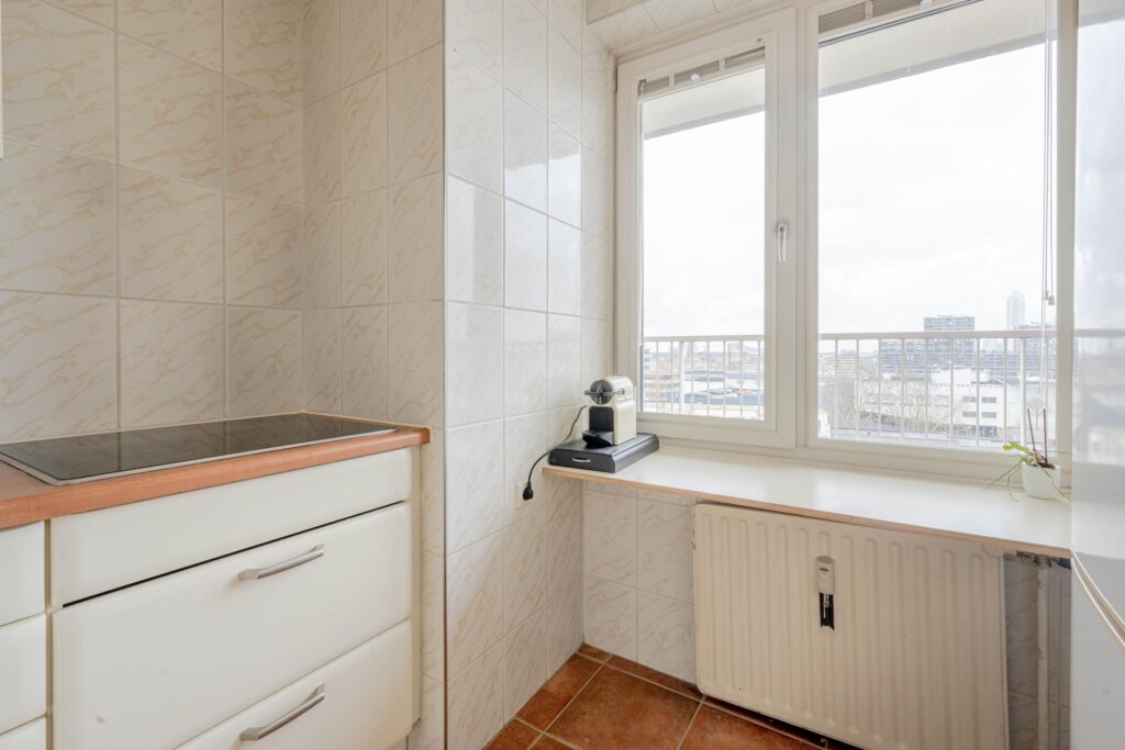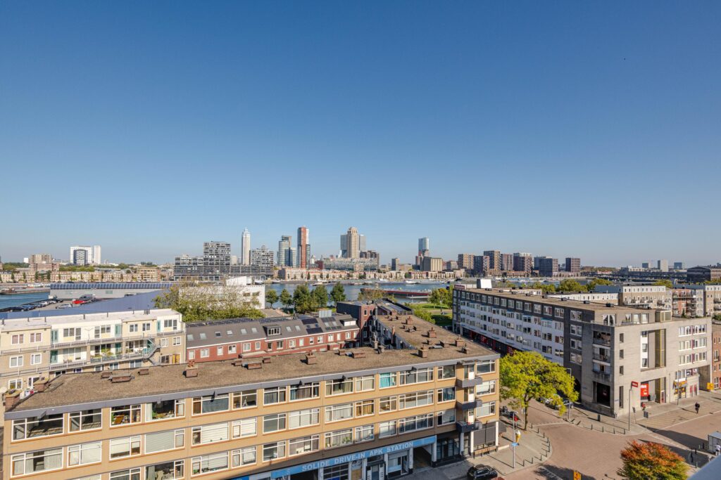 DROOM JIJ VAN COMFORTABEL WONEN OP HOOG NIVEAU MET EEN UITZICHT DAT NOOIT VERVEELT?Zwartewaalstraat 123 is precies wat je zoekt! Dit fraaie appartement bevindt zich op de achtste verdieping van een iconisch appartementencomplex op een centrale locatie, midden tussen de hotspots. De lichte en sfeervolle woonkamer met doorgebroken eetkamer geeft je dagelijks een panoramisch uitzicht over de stad. Keuken en badkamer zijn strak en in dezelfde stijl uitgevoerd. Vanuit zowel de keuken als de slaapkamer kijk je uit over het bruisende en hippe Katendrecht. In de onderbouw beschik je over een eigen berging en dankzij de vaste kasten in de woning is er aan bergruimte geen gebrek.